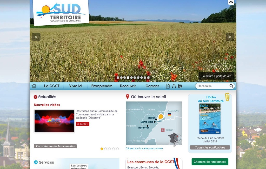 Mise en ligne en février 2015 La Communauté de Communes du Sud Territoire se situe dans le Territoire de Belfort en Franche-Comté. Créée en 2001, elle compte aujourd’hui 27 communes.